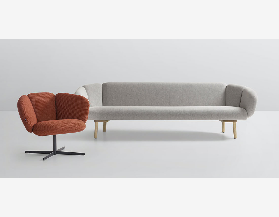 En 2020, le canapé Bras a été mis au goût du jour en lui donnant une silhouette encore plus arrondie, afin que son style corresponde parfaitement à celui des fauteuils Bras. Le canapé Bras est proposé en deux versions : sur un piétement tubulaire métallique ou sur un élégant piétement en bois qui lui donne une allure encore plus chaleureuse.