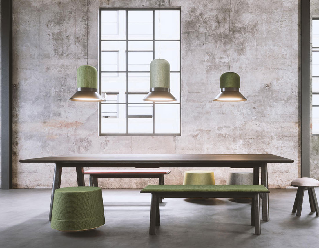Soyez audacieux et lumineux comme cette suspension ludique. Il ressemble à un dessin animé à l’extérieur, mais de haute technologie sous le capot. Le résultat: l’absorption acoustique et l’éclairage fonctionnel en un.