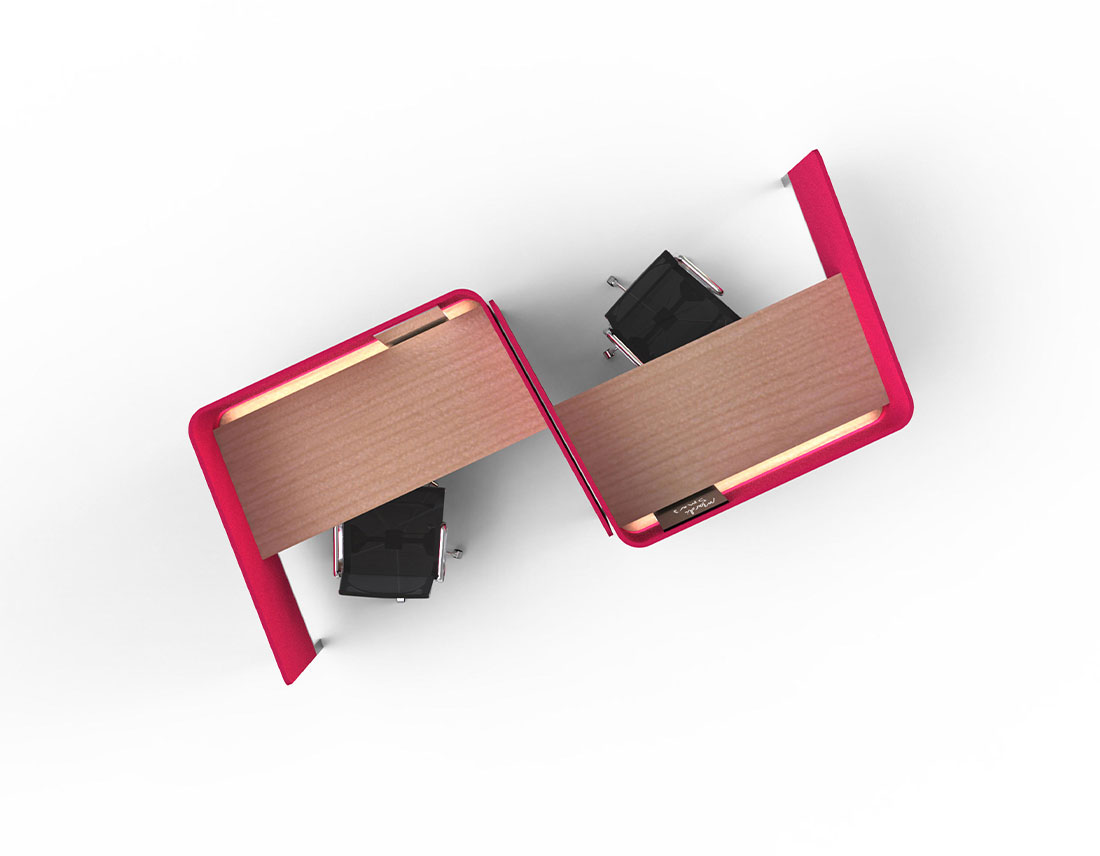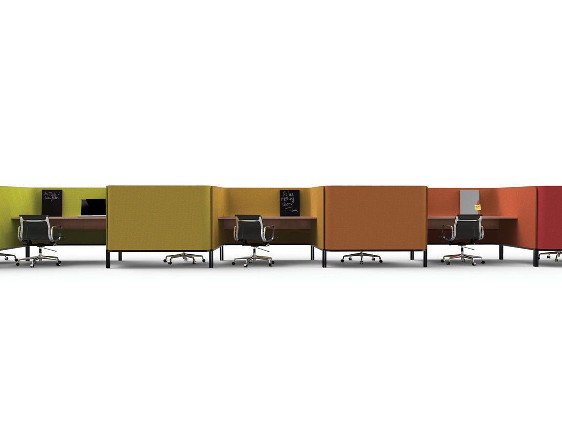 Connectez-vous ou concentrez-vous seul ou avec des collègues sur ce poste de travail temporaire. Les côtés ouverts vous aident à rester connecté avec le monde extérieur tout en offrant l’intimité nécessaire.