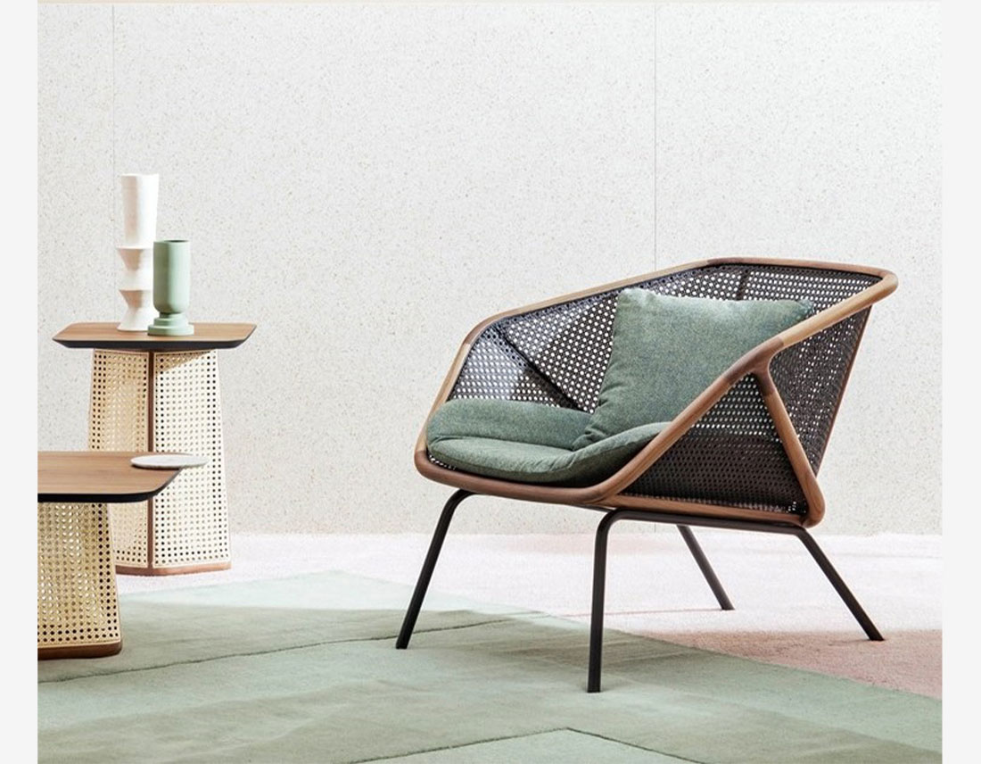 La structure enveloppante et la légèreté de la paille de Vienne caractérisent ce petit fauteuil Colony confortable, un portrait créatif du design moderne. Léger, il s’appuie sur une séquence d’espaces qui n’ennuient pas mais surprennent