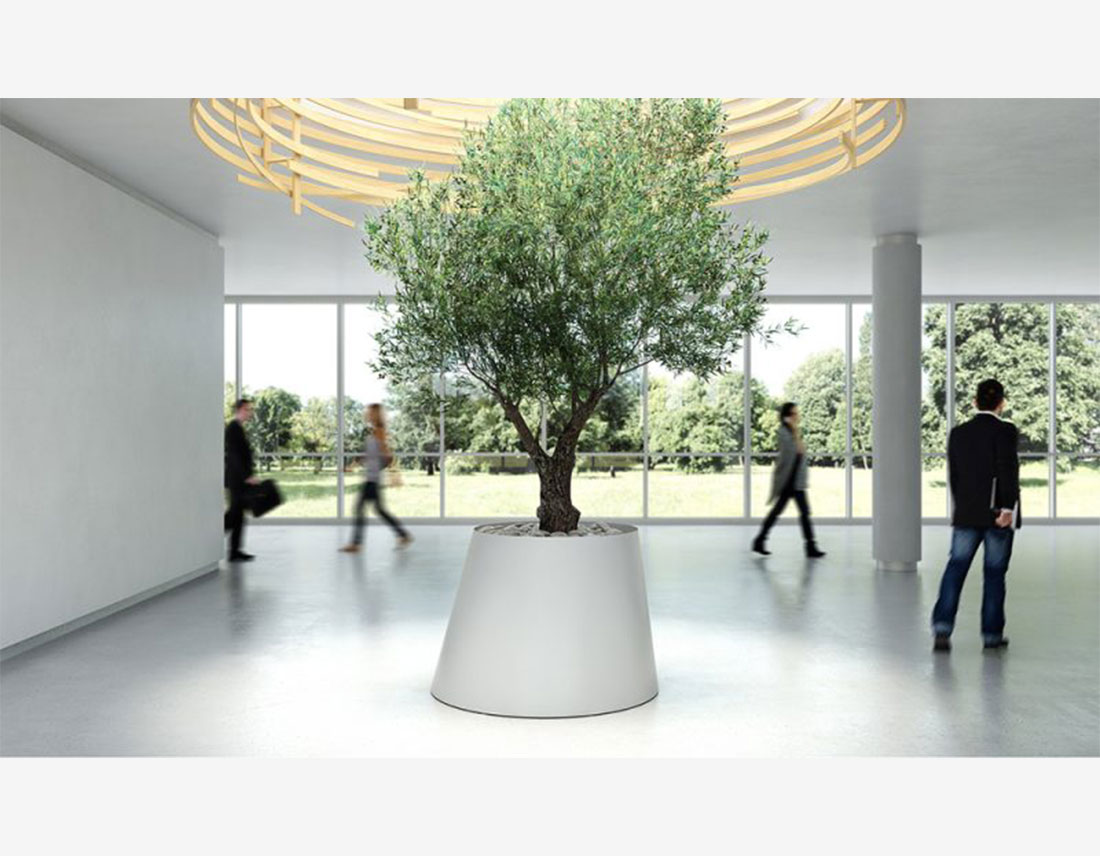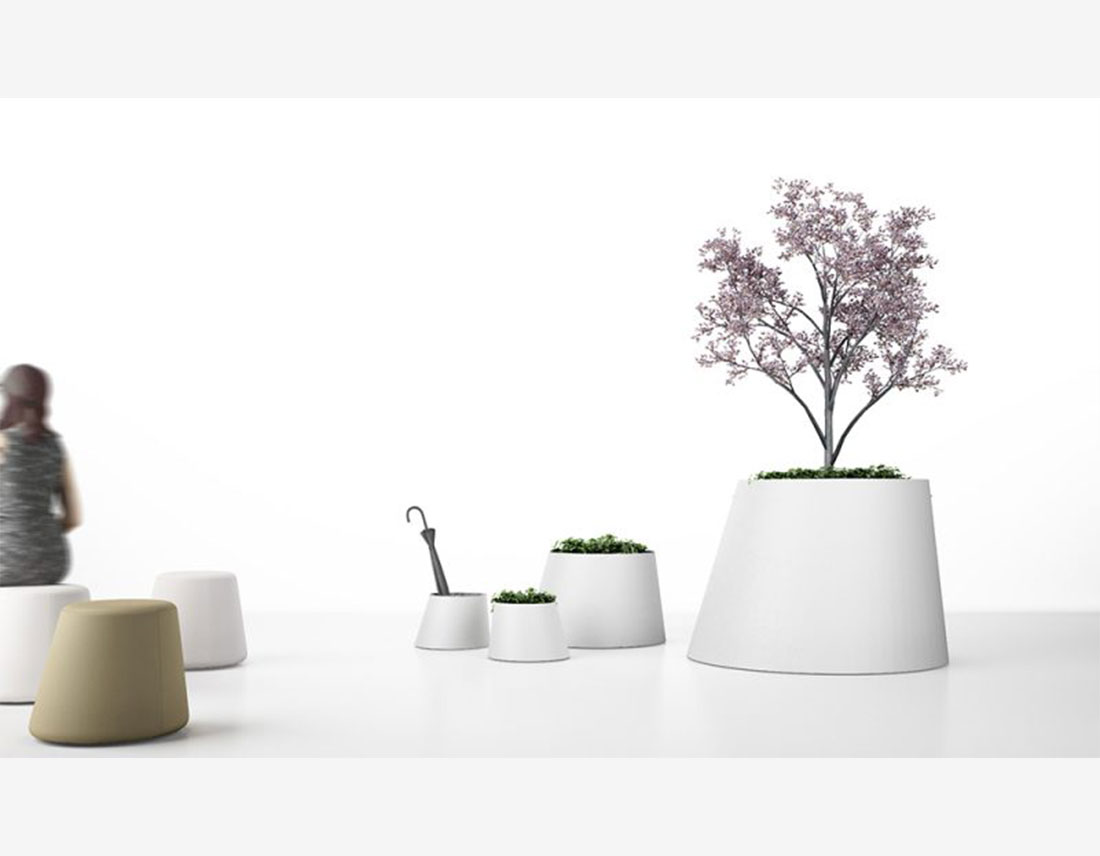 Les produits de la famille de l’esthetic conique est composée pas les plantes de pots et les bac de papier produites dans acier et feuilletée rembourées avec des roues, pour facilité le deplacement, cette disposition á différentes fonctionalités et la finition offre de mombreuses possibilités.