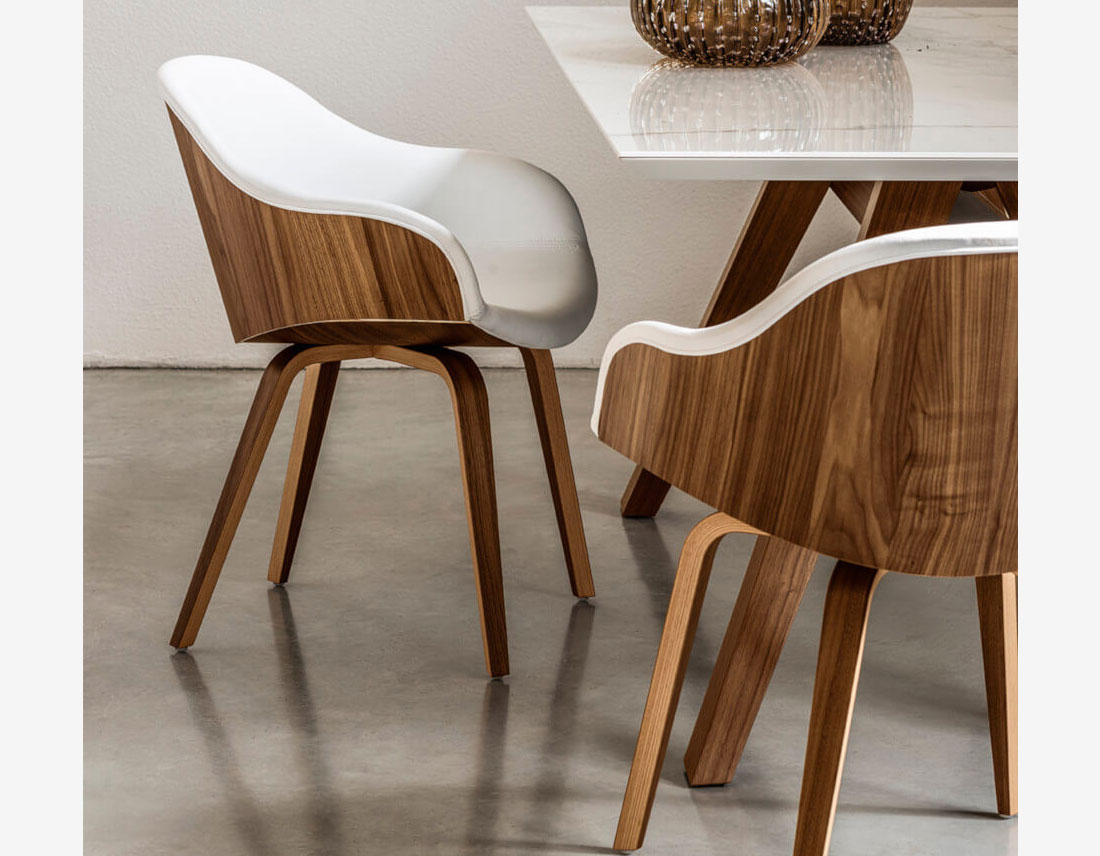 Danny est enrichi par l’exterier de le dossier en noyer flammé et par une base en bois pressée qui rappelle le style nordique tendance très spécial.