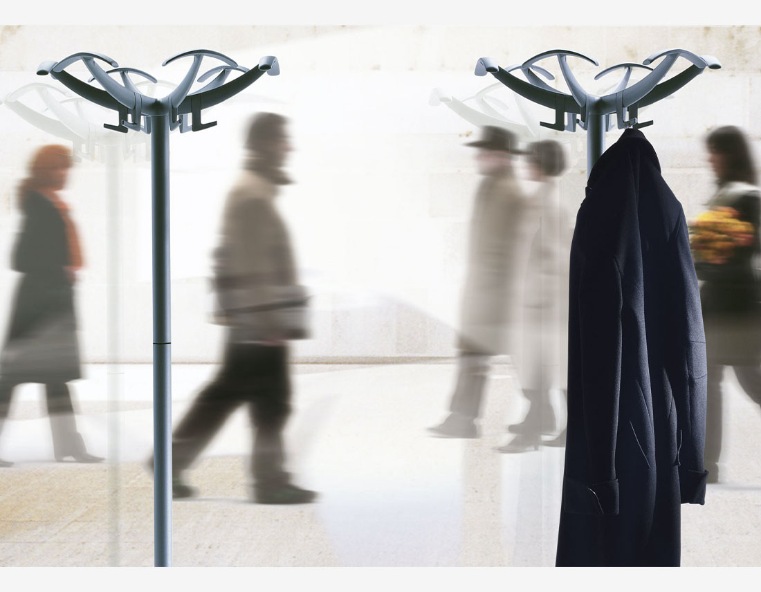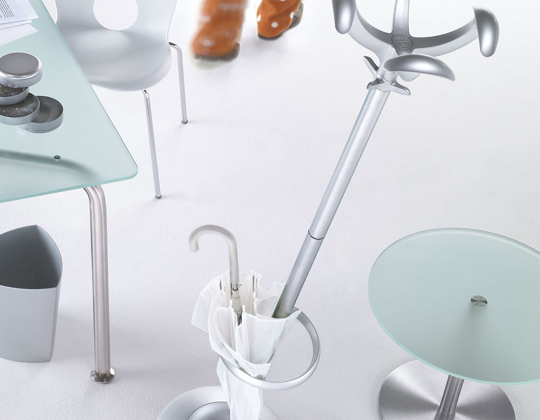 Sa silhouette d’arbre unique se retrouve dans les bureaux les plus modernes du monde: un design élégant, idéal pour suspendre tout type de vêtements sans déformer le tissu, complété par un porte-parapluie.