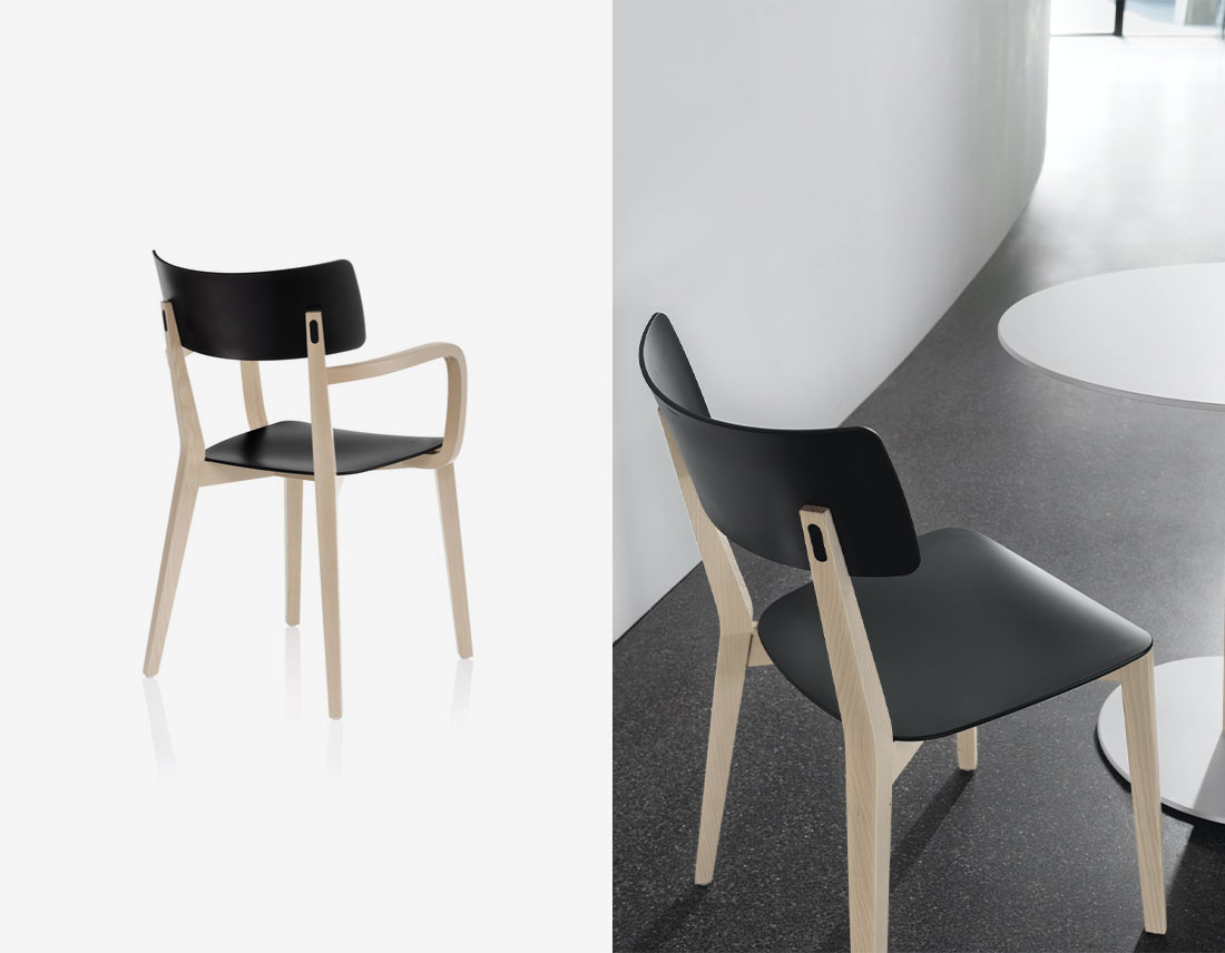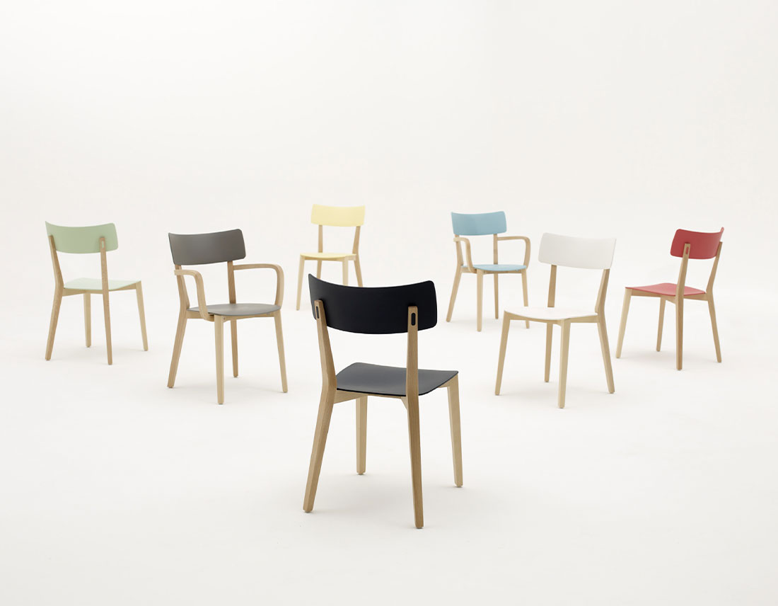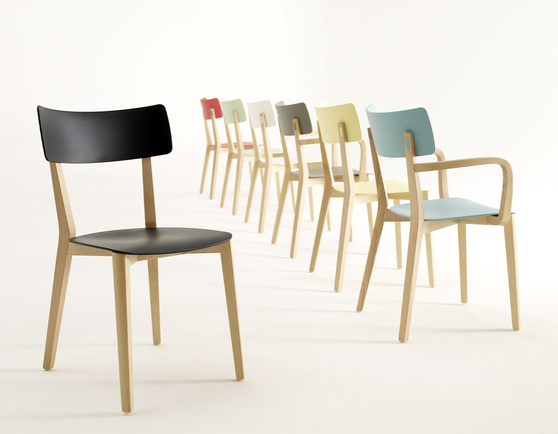 Les chaises due sont assemblées selon des techniques classiques de menuiserie. Cette gamme séduit par ses proportions modernes au goût du jour, ses détails raffinés et de nouvelles associations surprenantes de matériaux. La structure du modèle à quatre pieds est en hêtre massif, l’assise et le dossier sont fabriqués à partir d’un matériau synthétique facile à entretenir. L’élément joignant le dossier en synthétique et les montants en bois est toujours de la même couleur que le dossier. La structure du modèle en hêtre massif est disponible en différentes teintes de bois, tandis que l’assise et le dossier se déclinent en sept coloris. Grâce à ces différentes teintes de bois et à ces nombreux coloris, la due peut s’adapter aux concepts d’aménagement les plus divers.