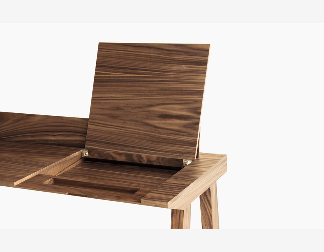 Ernest, Finaliste de bureau dans les prix Delta 2013 qui combine des lignes et des fonctionnalités modernes avec des détails d’autres temps. Sa dimension et ses proportions le rendent parfait pour les petits espaces. Son couvercle pratique donne accès à un espace qui permet de garder de petits objets et nous transporte vers des souvenirs du passé. Il a une mécanisation pour accueillir les câbles à l’arrière.