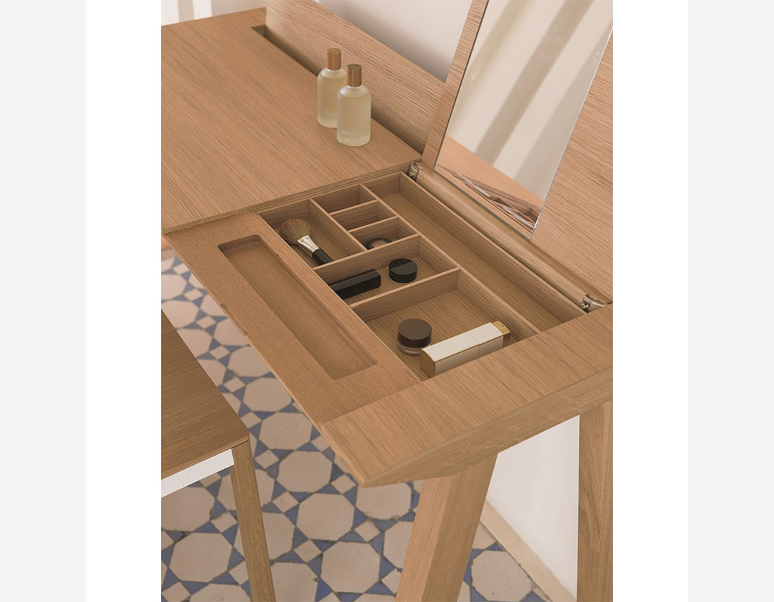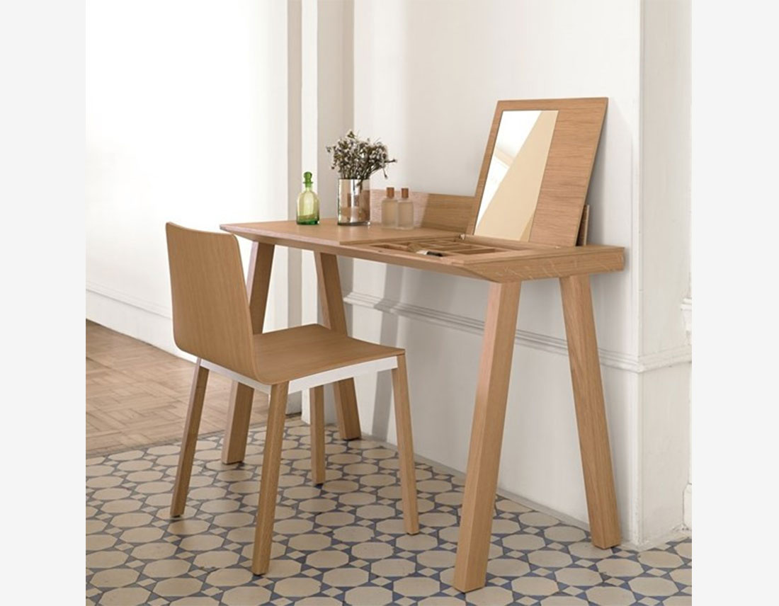 Le bureau Ernesta est la version féminine de notre succès Ernest. Cette pièce intègre un rangement à bijoux et un miroir intégré pour devenir votre meilleur complice et garder vos petits secrets.