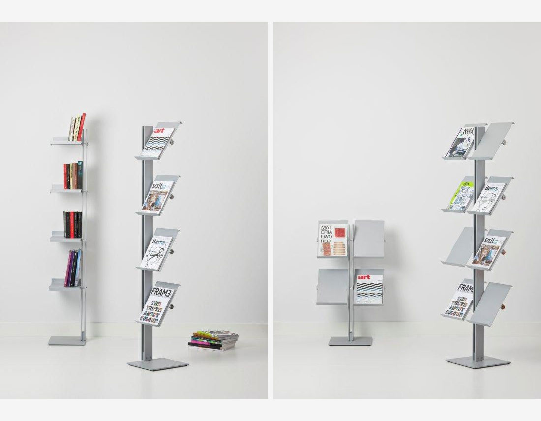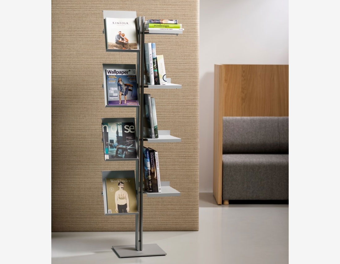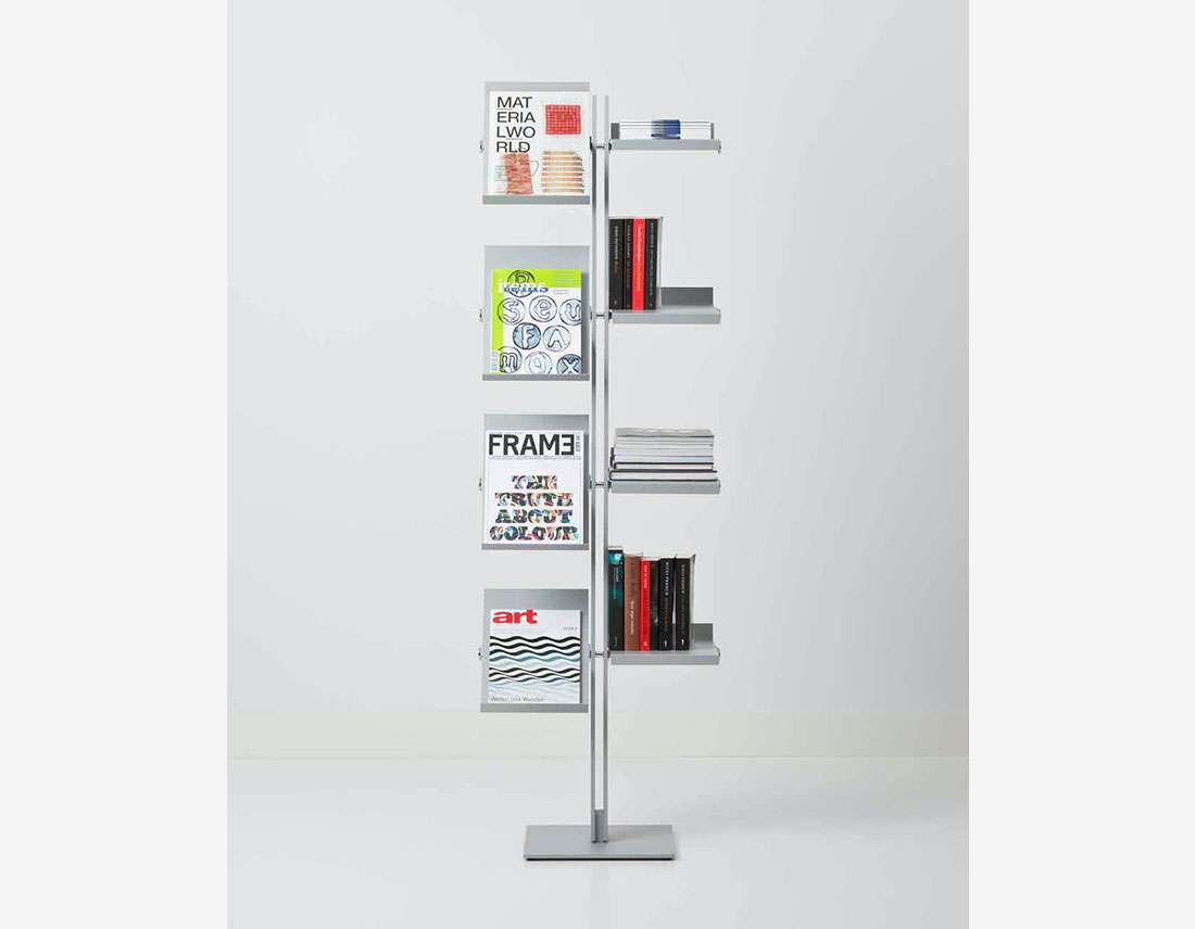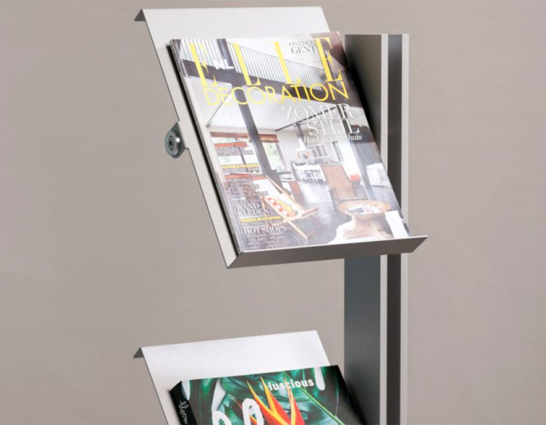 Les supports de brochures Flexxible sont disponibles en différentes hauteurs, allant d’un à quatre panneaux. La version simple a des panneaux d’un côté, la version double a des panneaux des deux côtés (2 à 8 panneaux). Les panneaux peuvent être placés sous un angle ou horizontalement.