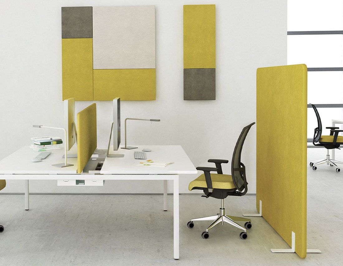 Le système d’écran acoustique FREE STANDING offre des possibilités illimitées pour diviser votre bureau avec des barrières visuelles et acoustiques. Vous pouvez choisir des écrans autoportants avec pieds de support ou des écrans mobiles sur roulettes. Grâce à leur facilité de mobilité et à leur montage simple impliquant des connexions métalliques, ces écrans acoustiques vous permettent de diviser facilement votre espace de bureau en zones souhaitées ou d’isoler du matériel de bureau bruyant. Ces panneaux peuvent également servir de séparateurs d’espace de travail. Nos écrans acoustiques sont disponibles dans une large sélection de tailles.