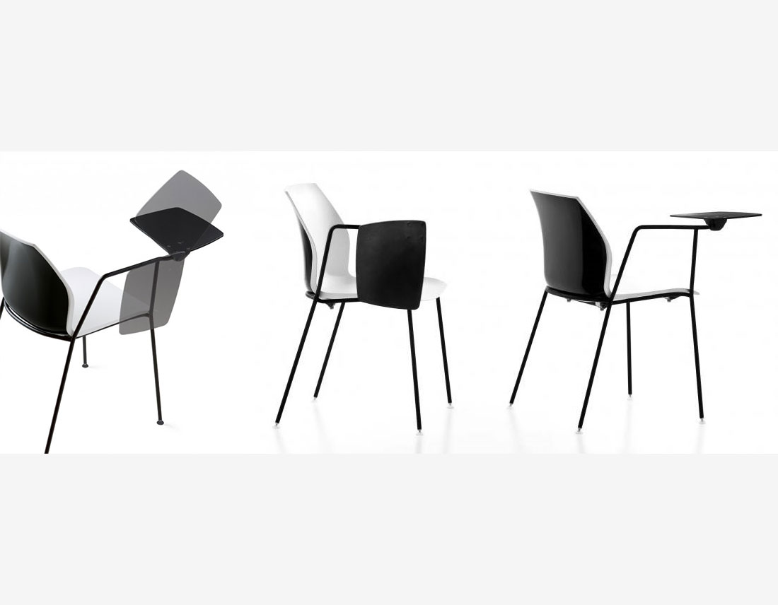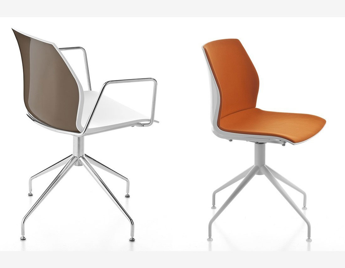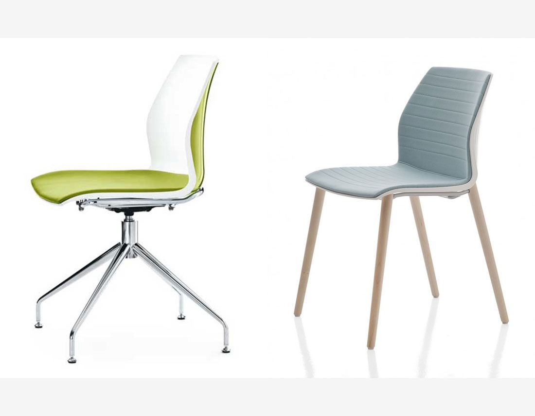 • Coque en polypropylène, monocolore ou à deux couleurs avec assise rembourrée