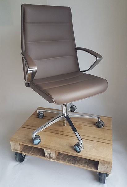 lisse sans coutures ou avec coutures linéaires. Le nouveau mécanisme synchronisé avec système automatique du réglage de la tension du basculage en fonction du poids de l’utilisateur n’est pas visible car il est intégré dans l’assise et il a des réglages simples et fonctionnelles. Les accoudoirs en aluminium poli avec manchette rembourrée sont fixés dans le dossier.