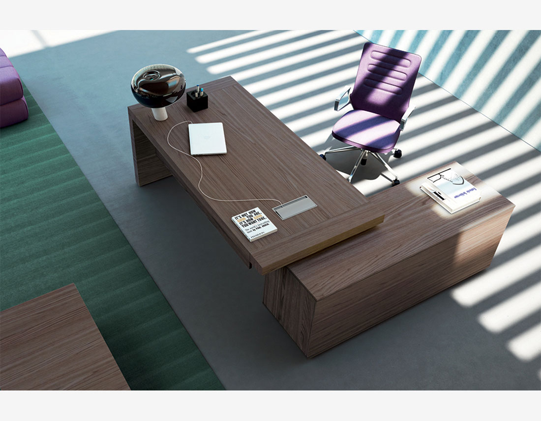 Un seul et unique signe fort et essentiel pour exprimer le prestige d’un bureau directionnel classique et à la fois contemporain.