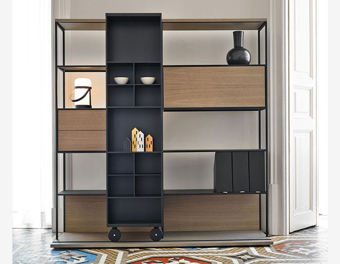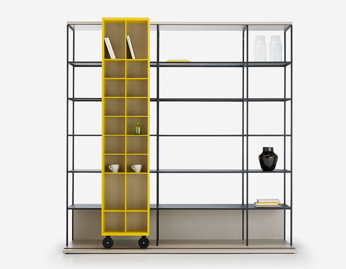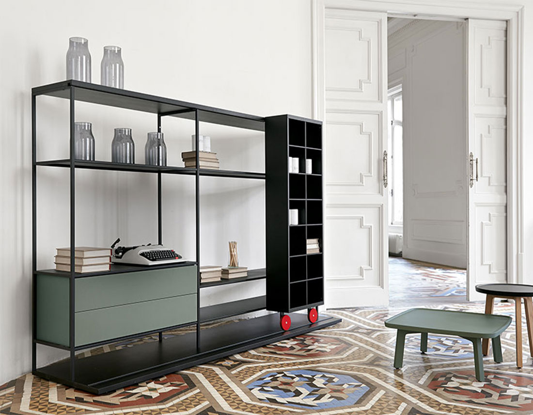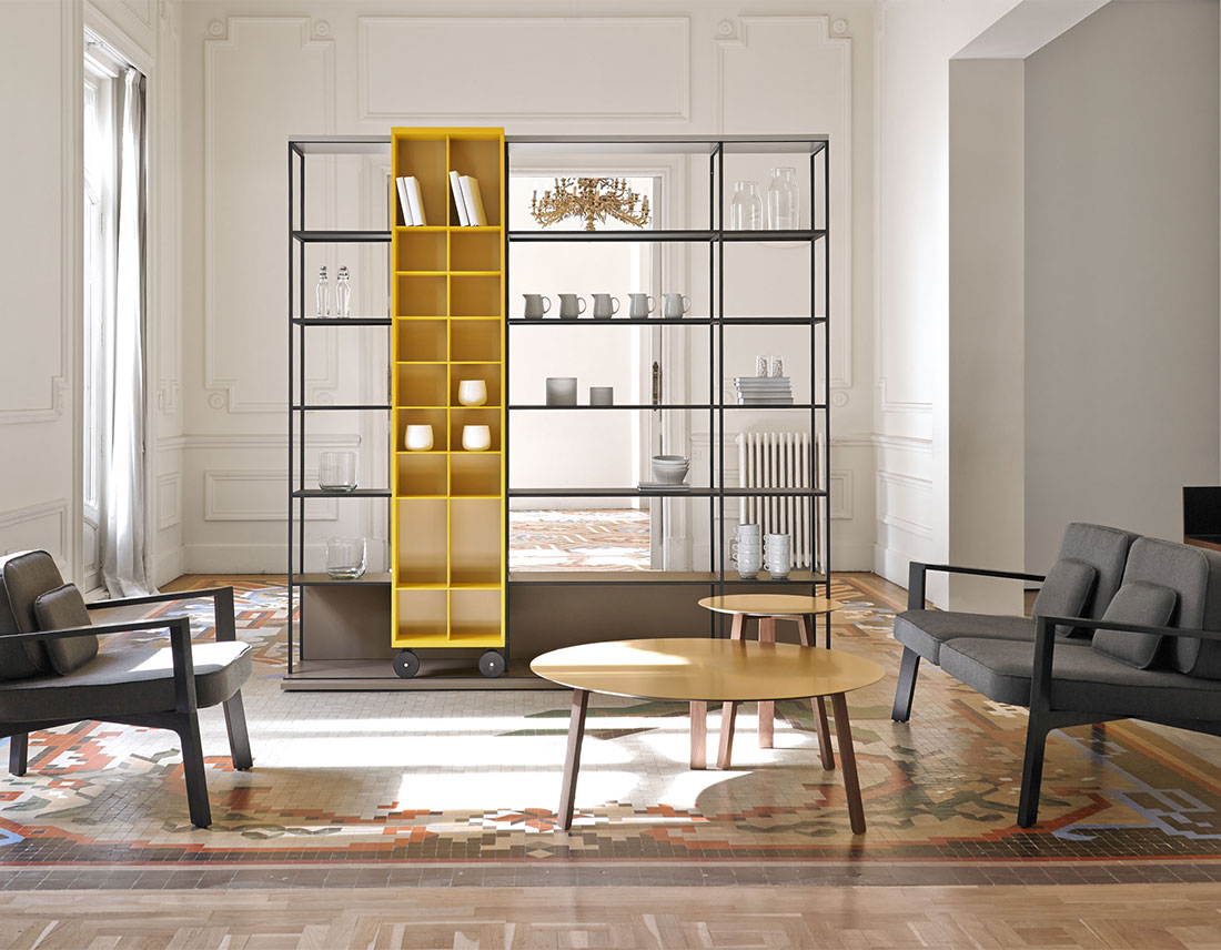 Collection d’étagères avec des roues, des étagères, des buffets et des meubles de télévision inspirés de la bibliothèque classique et mythique « La Literatura » conçue en 1985 et lauréate de prix et distinctions tels que la sélection ADI FAD de 1986. Exposée dans les musées et avec une contribution incontestable à obtention par plate-forme du National Design Award en 1997. Classé comme un classique contemporain depuis 1997. Son chariot sur roues incomparable a servi pendant des décennies à stocker une infinité de livres, ainsi qu’à accueillir l’ère numérique et à s’intégrer avec équilibre, beauté et l’émotion dans toutes sortes d’architecture et de design d’intérieur. Dans cette version, l’OPEN, conçue en 2014, les volumes deviennent transparents et encore plus légers, en même temps que des conteneurs peuvent être intégrés et ouvrent la possibilité de générer des divisions de pièces. Étagères fixes. Base avec pieds réglables.
