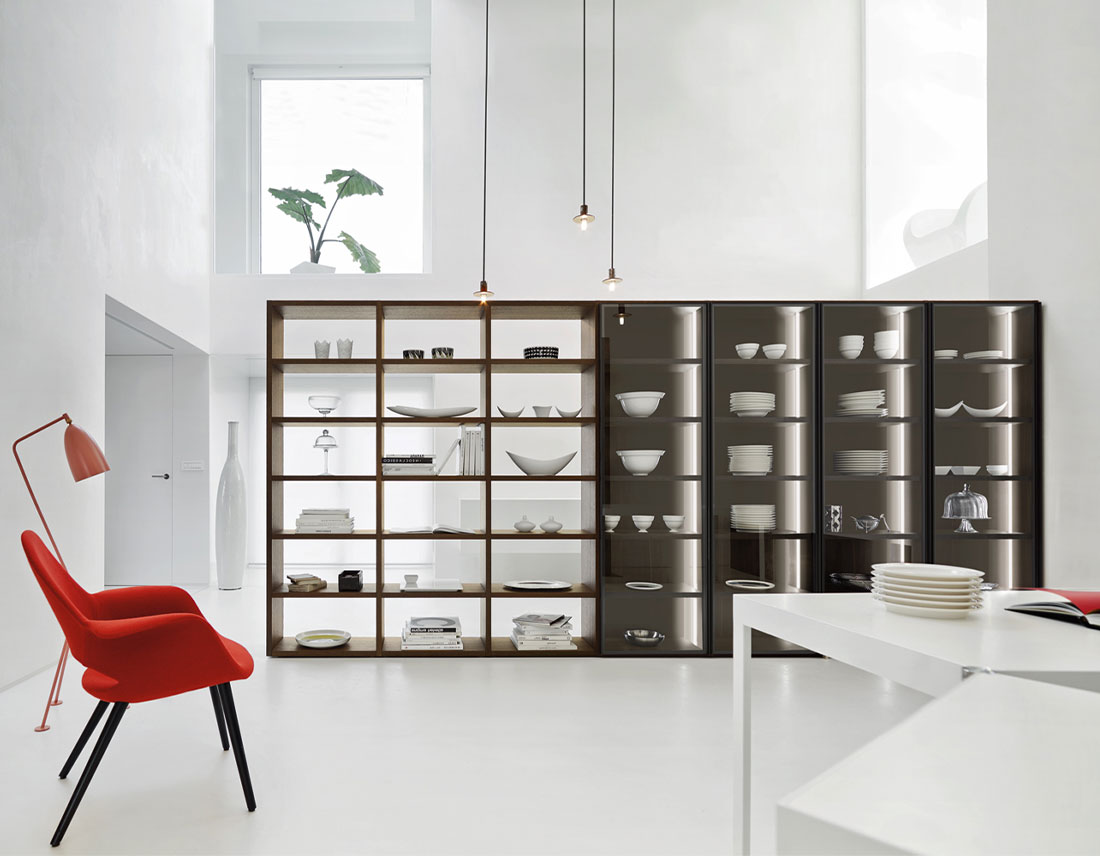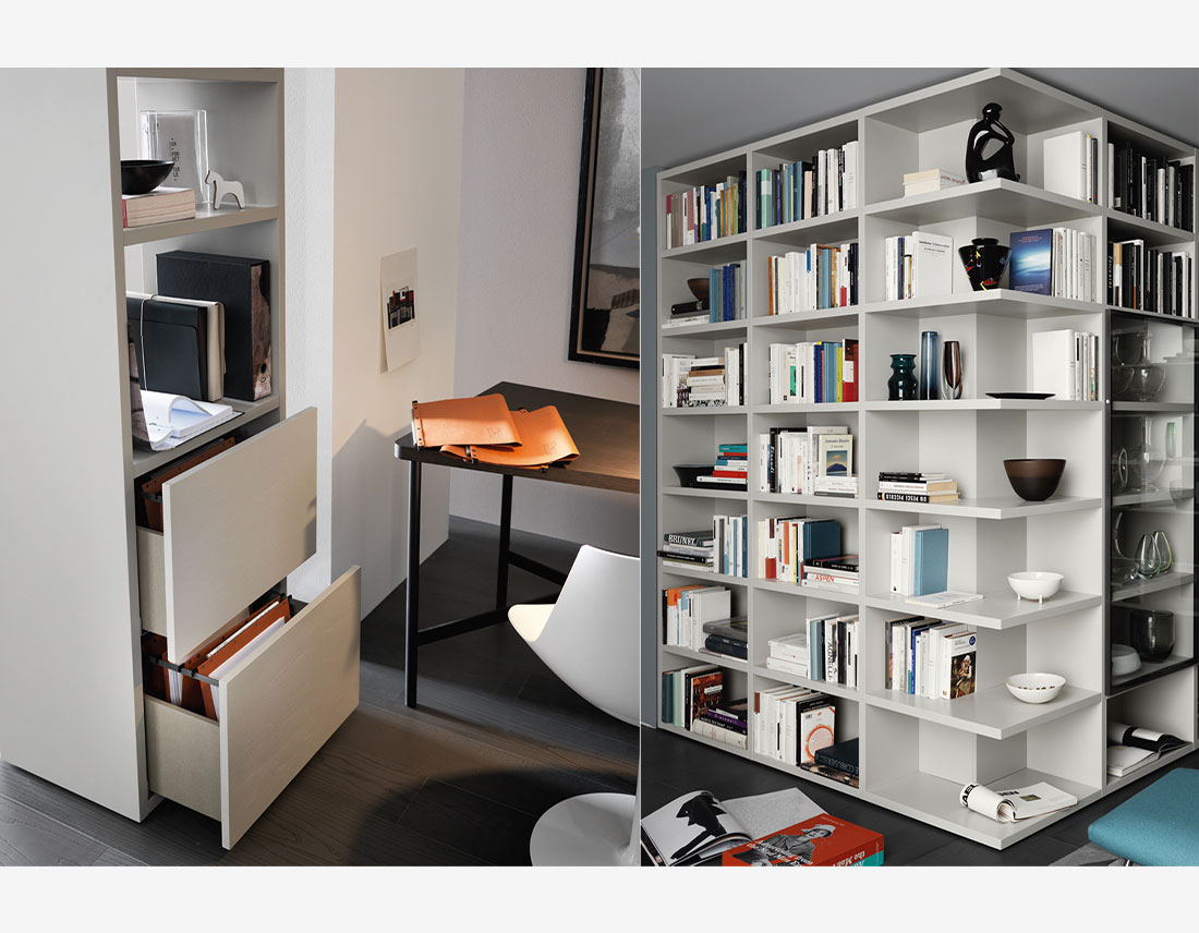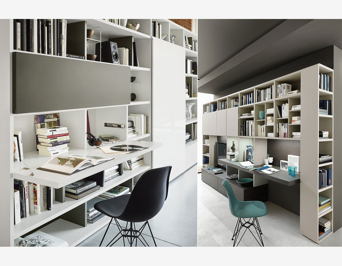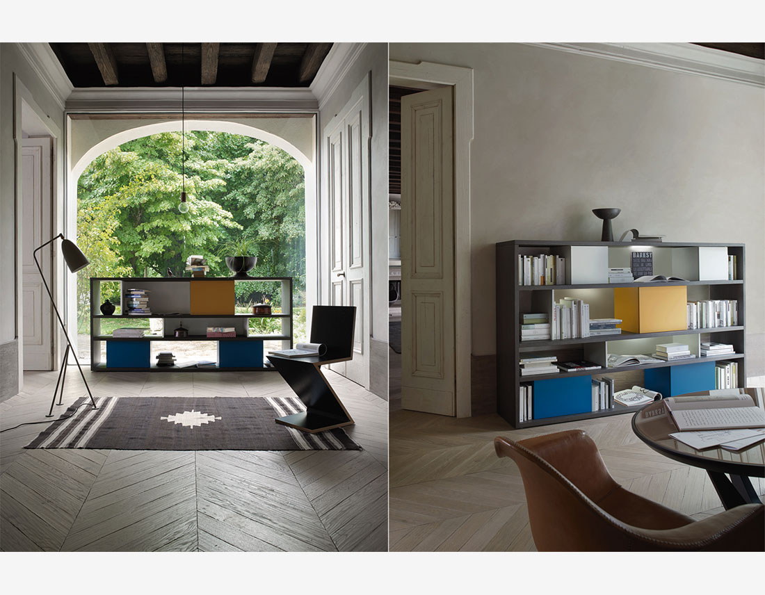 Une créativité épaisse Avec Modo, la linéarité typique du cadre de vie contemporain prend une nouvelle vie grâce à la diversification de l’épaisseur des portes et des façades. La composition est structurée dans une alternance harmonieuse et dynamique de légères saillies et évidements. Au jeu de perspective des surfaces, s’ajoute celle chromatique et matérielle, grâce à la possibilitépour combiner plusieurs teintes laquées, brillantes ou mates, ainsi que différentes essences, en explorant des possibilités pratiquement infinies.