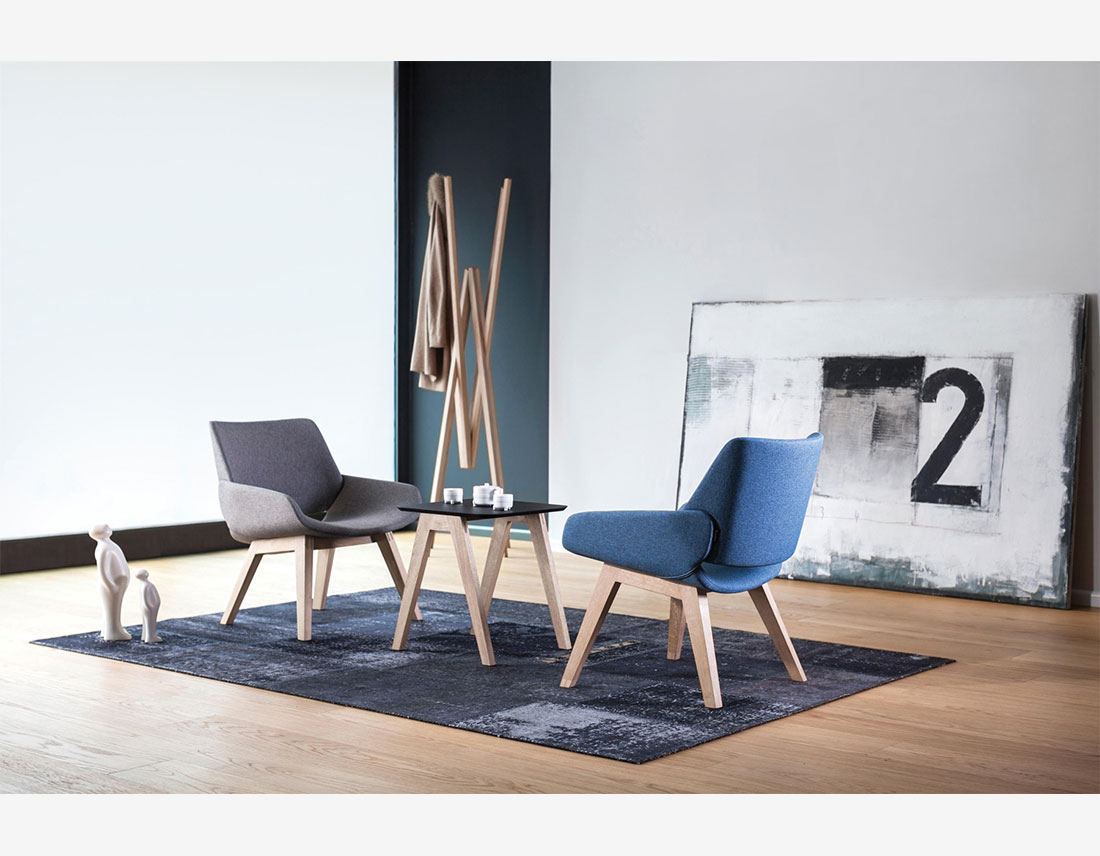 La collection Monk est la fusion entre la tradition moderne régionale et le design contemporain. A l’origine, la chaise et le fauteuil étaient désignés pour la rénovation d’une icône de l’architecture, le Palace Hotel à Dubrovnik. Les assises étaient également un hommage à la chaise populaire Lupina, un classique créé par Niko Kralj. L’idée était de trouver l’harmonie au niveau de la jonction des deux éléments arrondis, en premier l’assise se développant en accoudoir et en second le dossier. Ceci s’exprime par deux coques rembourrées et montées sur des piétements variés, plus hauts pour la chaise et plus bas pour le fauteuil. Le nom de la collection reflète de façon figurative l’association d’idées qu’a inspiré l’équipe des designers : « comme si un vieux moine, en habit de coton modeste décida de s’asseoir sur une chaise de bois sans prétention ». Au quotidien, les deux Monk, chaise et fauteuil, inviteront tout autant au travail qu’à la contemplation. La collection est complétée par des tables basses, une table à manger et un tabouret haut.
