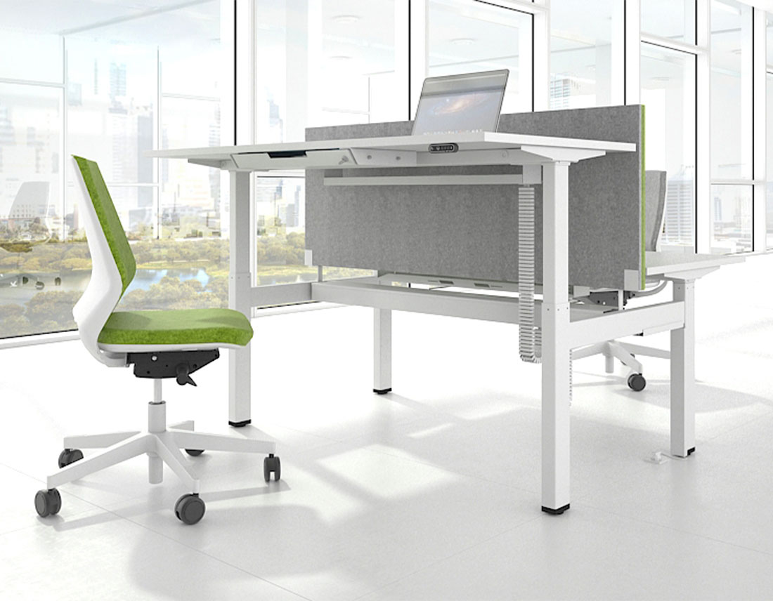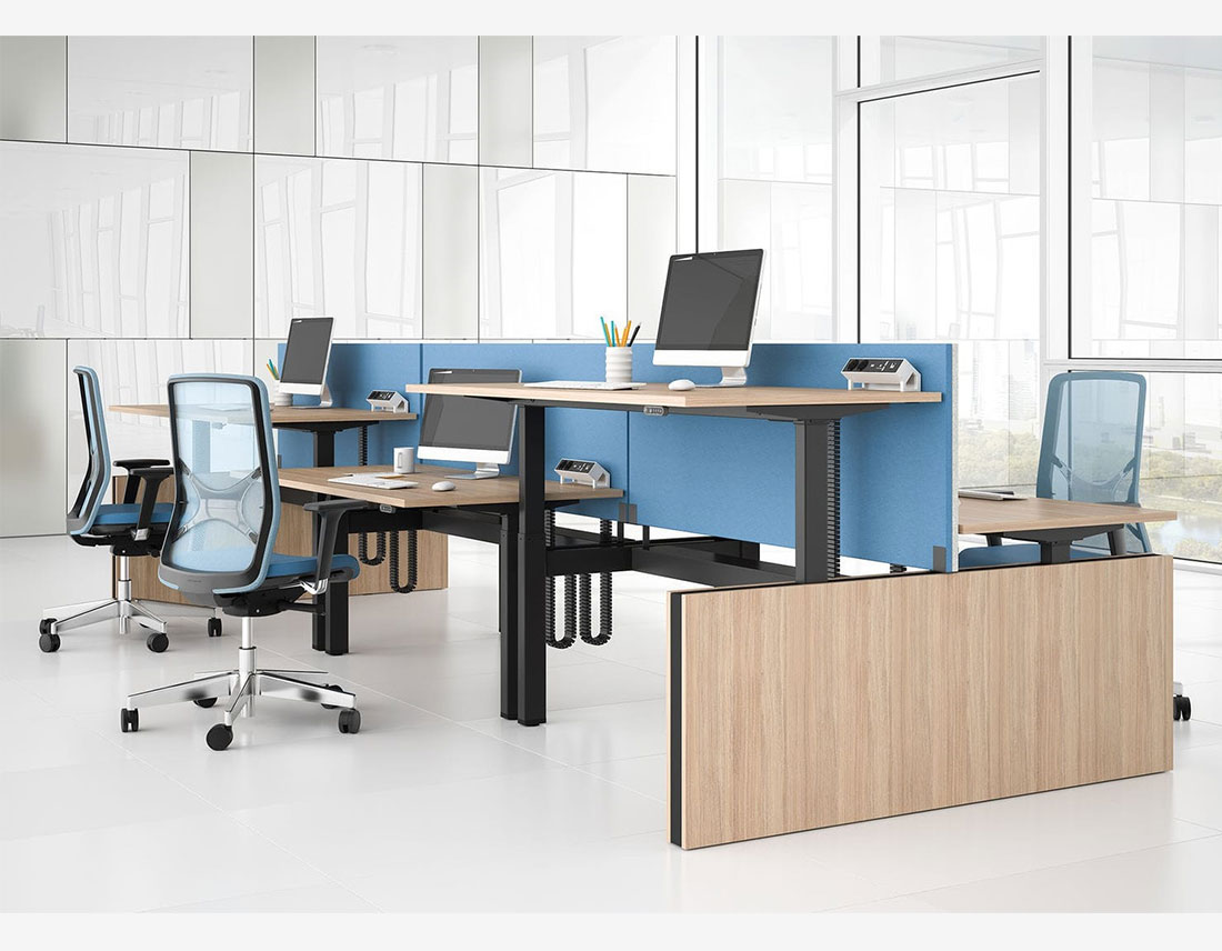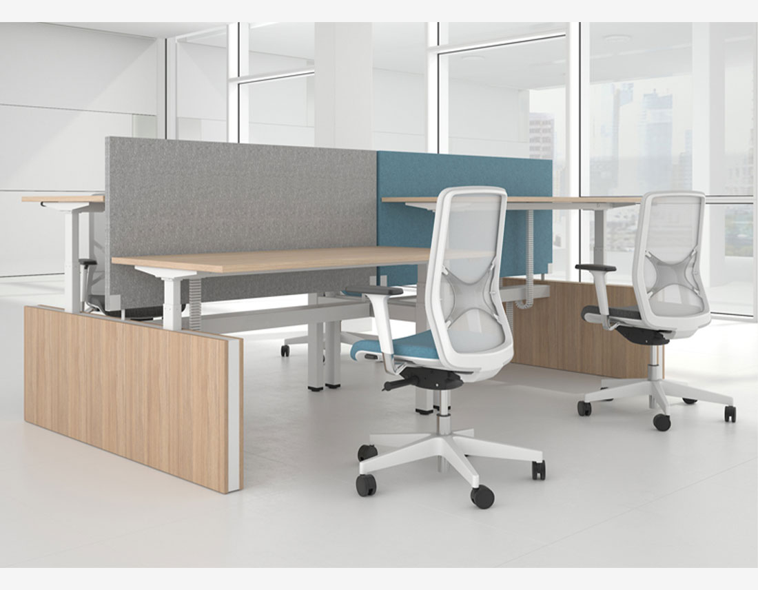 Un changement régulier de posture améliore votre bien-être et votre concentration et un espace de travail ergonomique et bien organisé suscite des émotions positives. Le système est disponible sous forme de bureaux individuels ou de bancs de bureaux conçus pour un agencement flexible des postes de travail ainsi que pour un travail individuel ou en groupe.