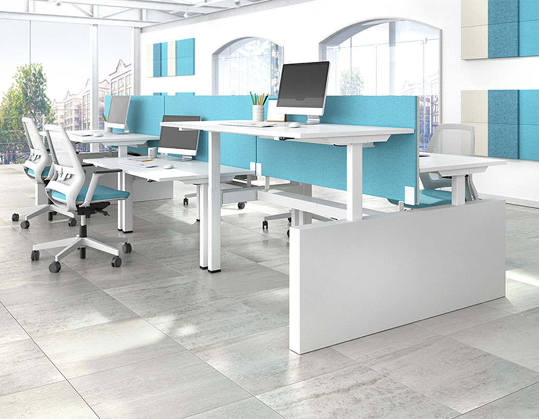 Un système de bureau électrique réglable en hauteur conçu pour un style de travail dynamique.