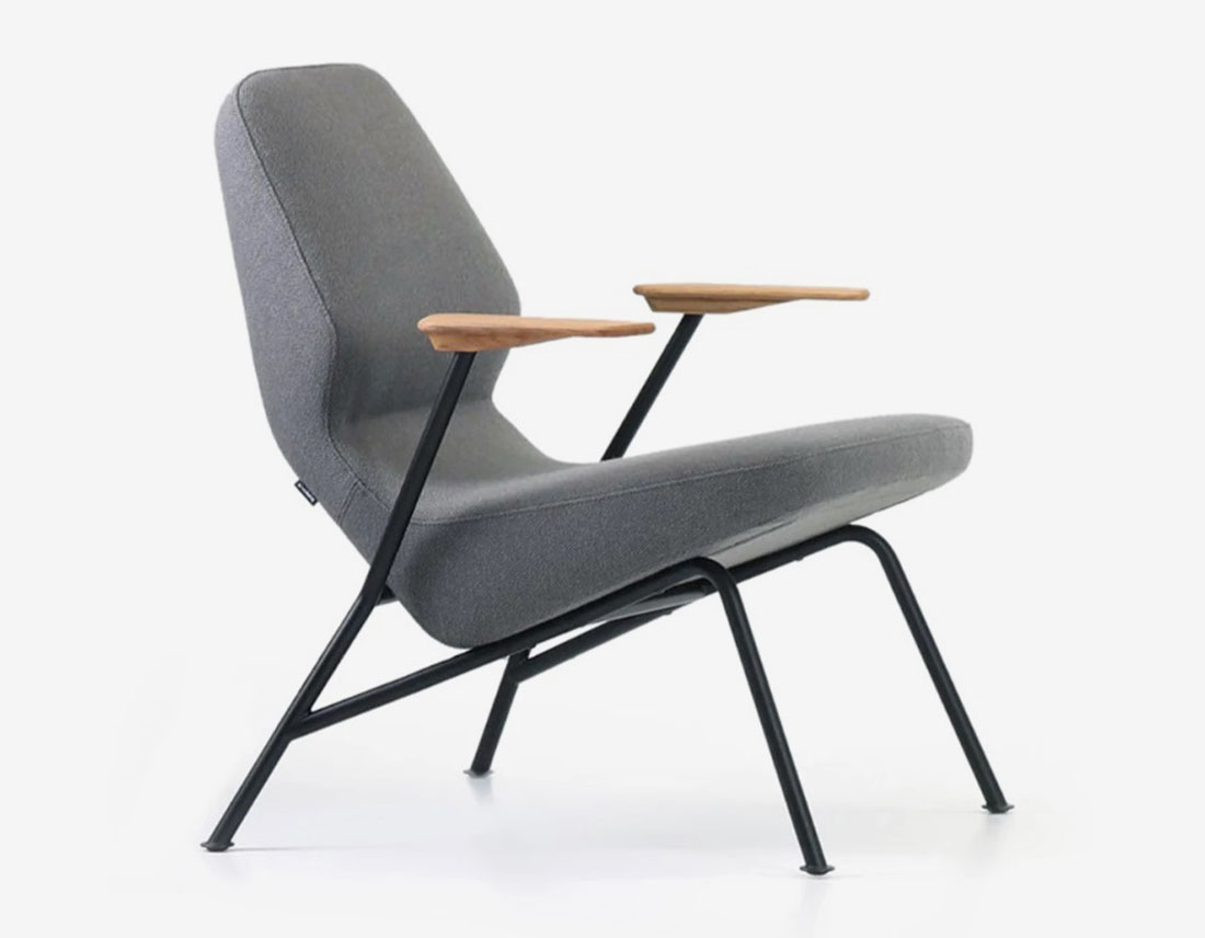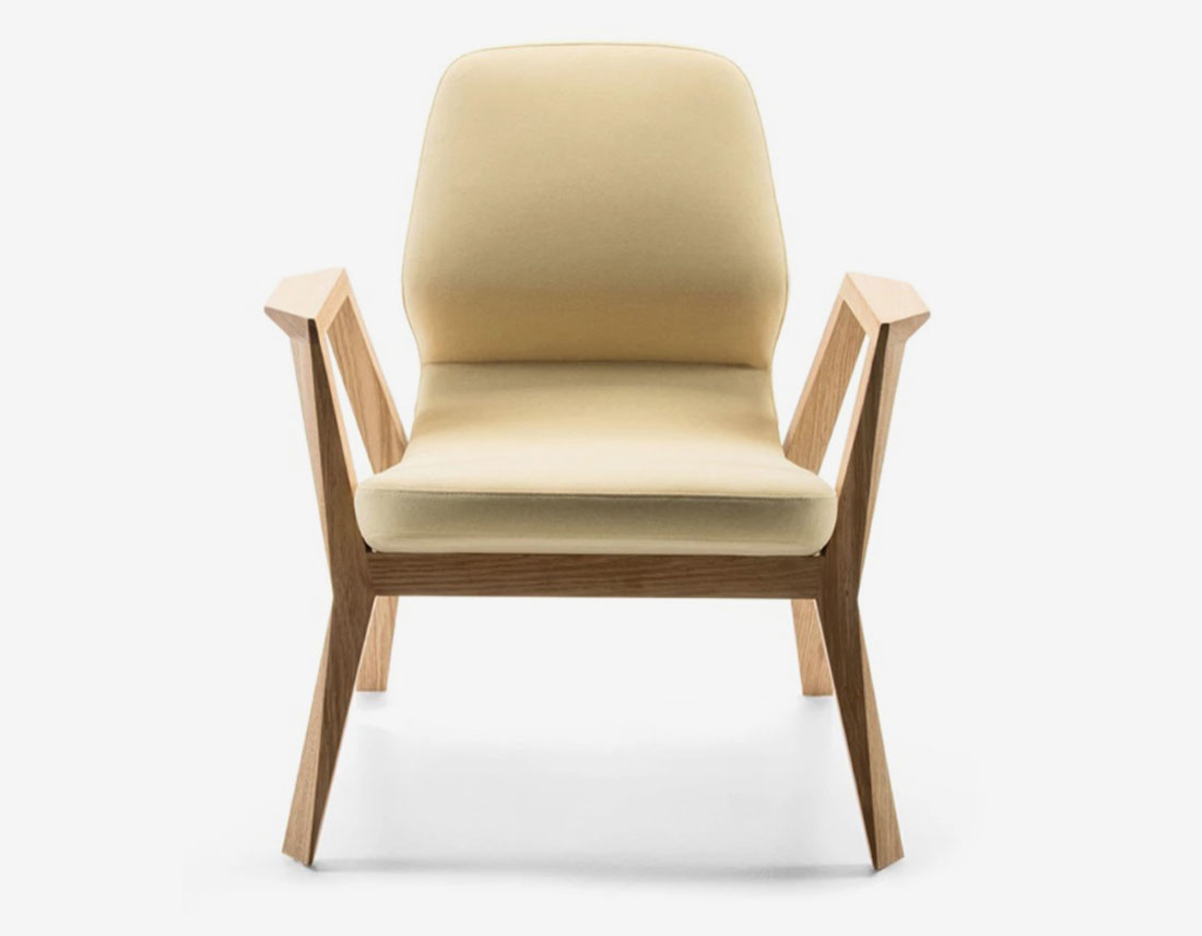 Le haut du piétement forme un support rectangulaire à section carrée mais les pieds s’affinent par la suite vers le bas pour finir en section triangulaire à la base. De cette façon, nous avons réduit le côté robuste des structures en bois massif habituelles, pour laisser la place à un design à géométrie expressive et à caractère contemporain. Nous avons perfectionné et fait évoluer le produit au fil du temps proposant, en plus du piétement en bois massif, une version piétement métal qui comprend également un accoudoir. La ligne Oblique se complète par une table à manger et des tables basses.