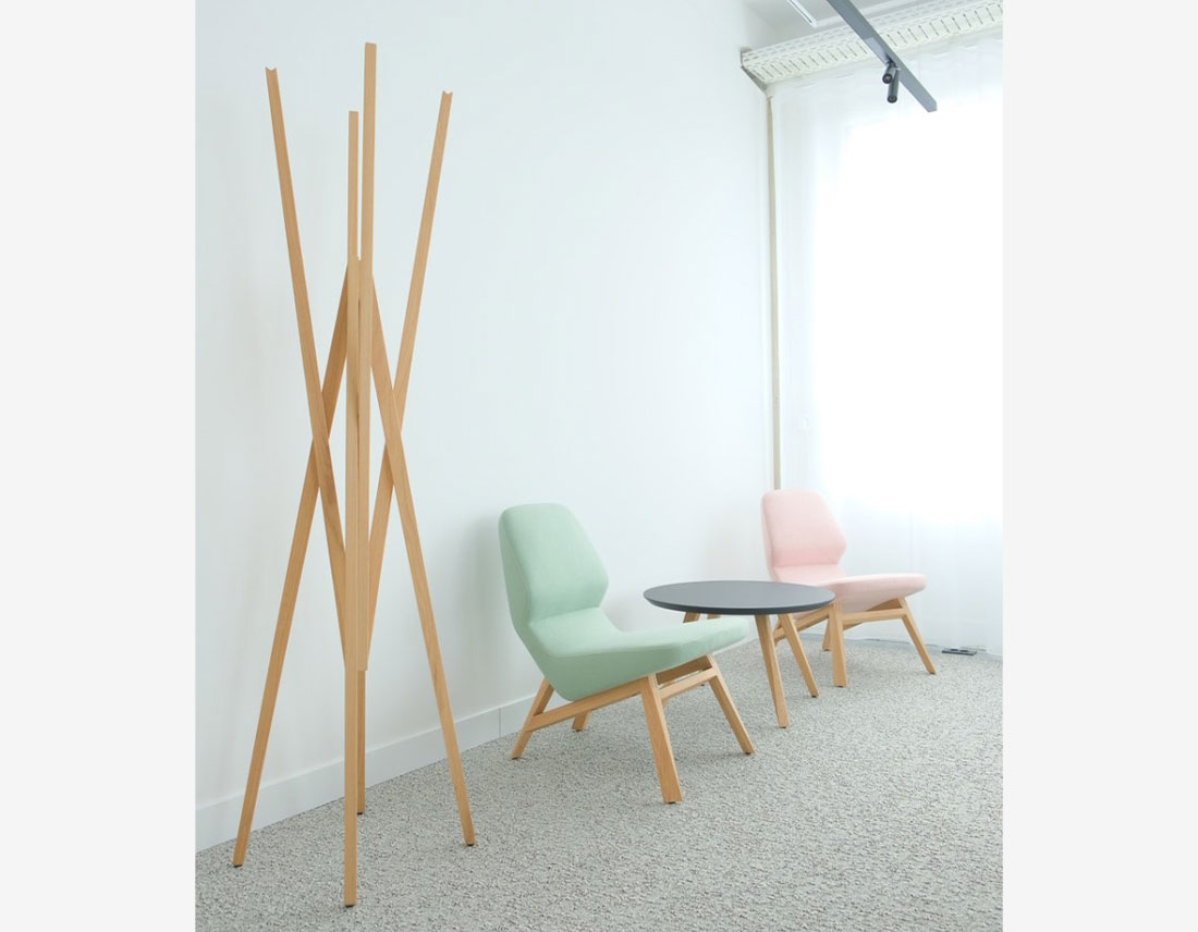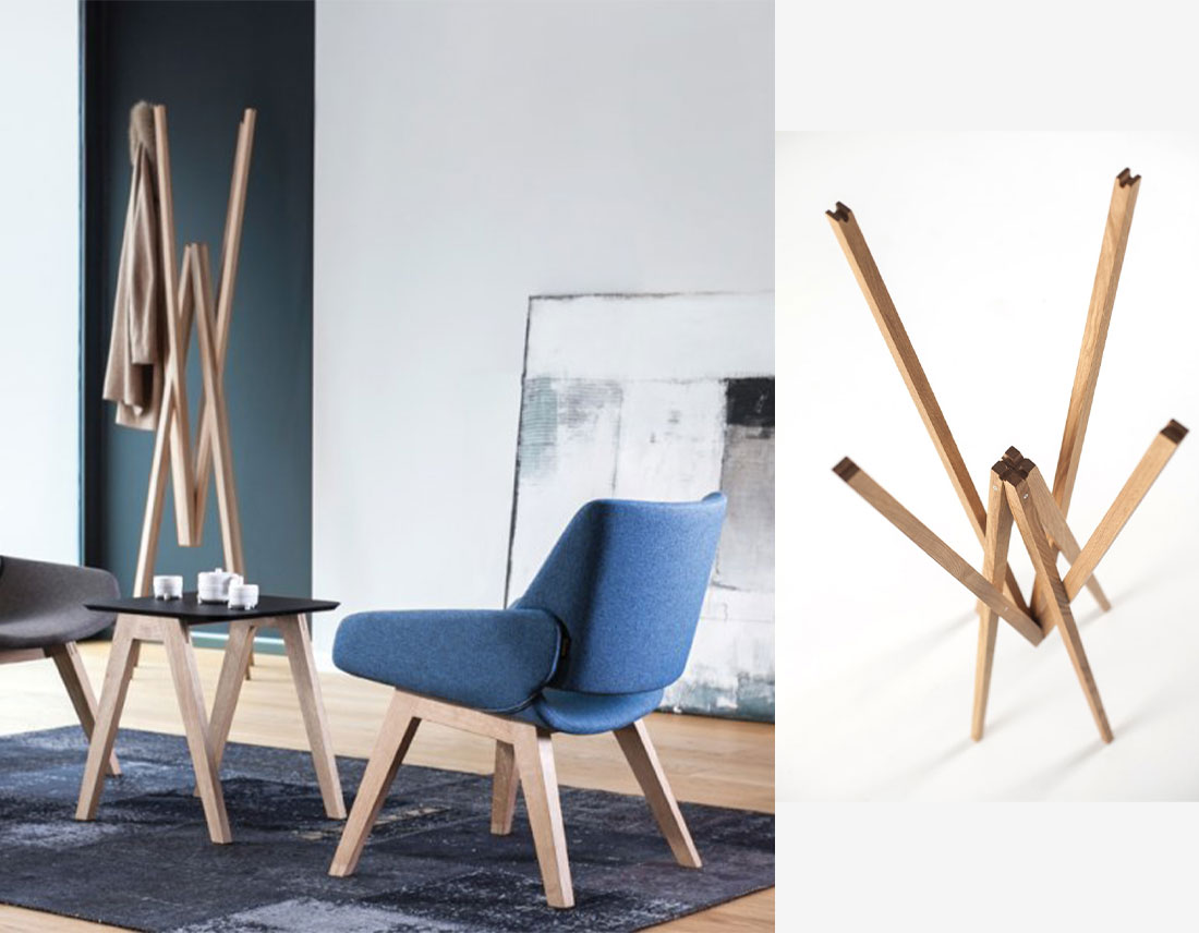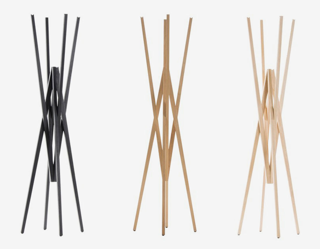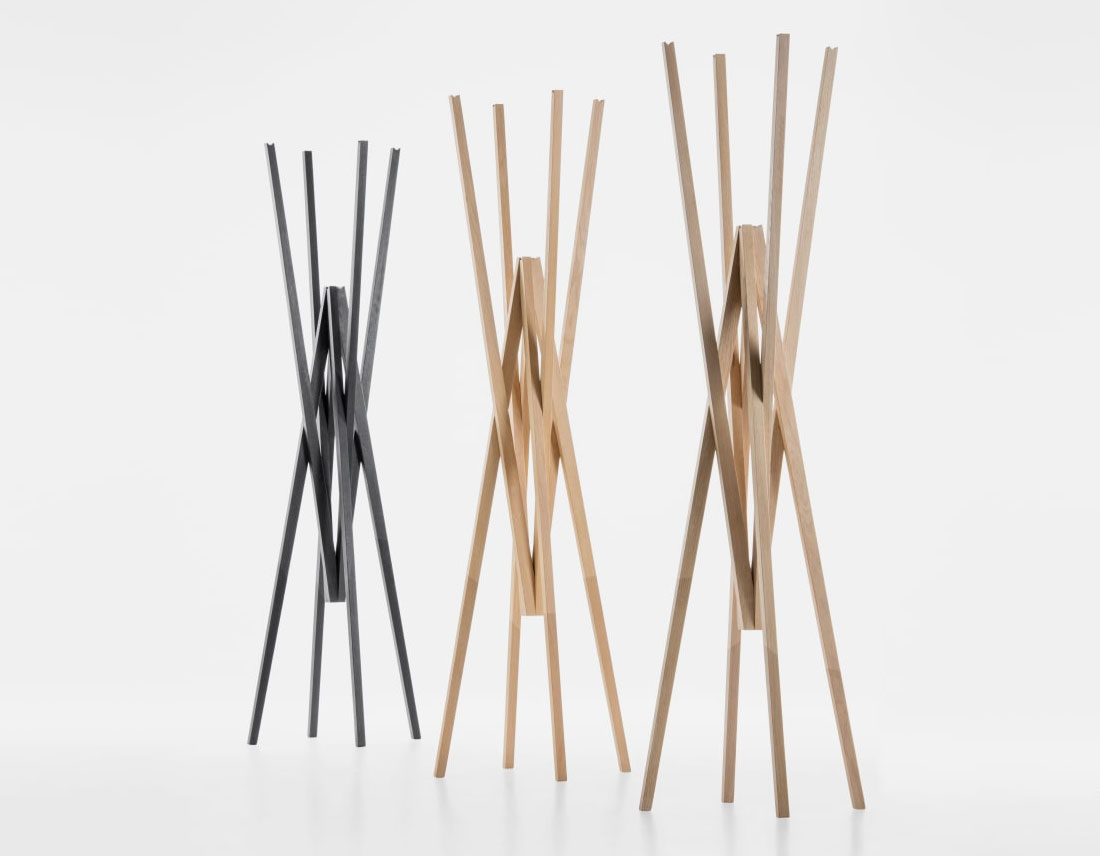 Le nom du porte-manteau reflète la forme symétrique créée par rotation et réflexion d’un support droit unique. Ce principe de conception réduit la consommation de matériaux, permet un montage et démontage facile ainsi que le transport « flat-pack ». Les lignes droites des pyramides juxtaposées changent dynamiquement l’apparence du portemanteau, de la symétrie statique à une forme dynamique et vibrant, en fonction de l’angle de visualisation.