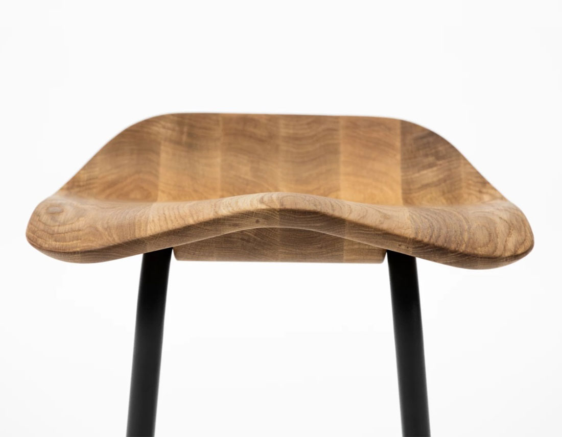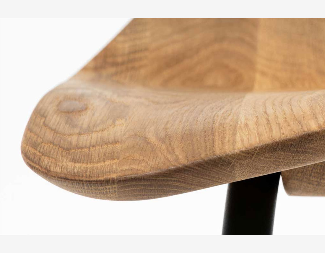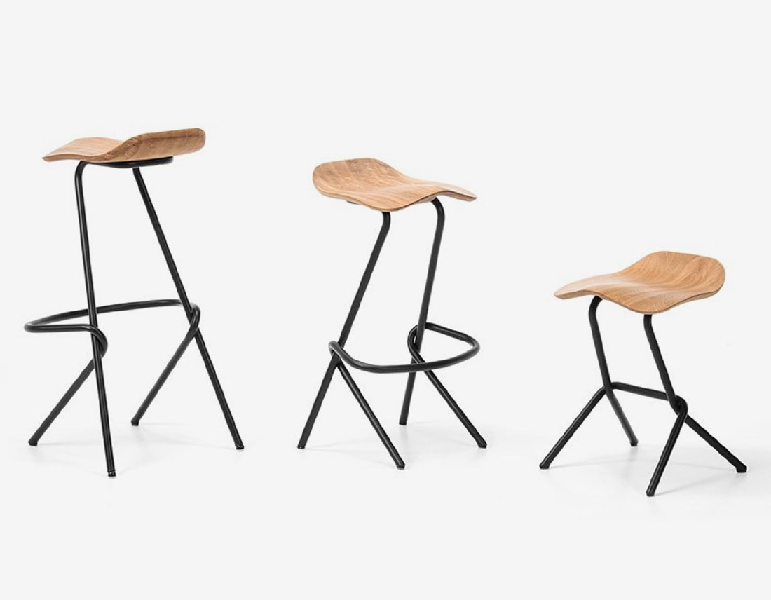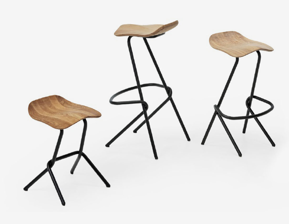 Le tabouret haut est caractérisé par la forme découpée de la coque du siège et le principe d’entrelacement des pieds tubulaires – ce qui est une caractéristique distinctive dans l’ensemble de la collection Strain. Fait en bois massif et traité avec de l’huile naturelle, le siège ergonomique, inspiré par la selle, offre plusieurs façons d’assise dynamique. Le principe d’entrelacement des pieds tubulaires fournit d’un coup le repose-pied et le siège, tout en assurant la rigidité de l’ensemble de la structure. Disponible en deux hauteurs, le tabouret de bar est applicable dans toutes les situations d’intérieur, dans les bâtiments résidentiels ou publics.