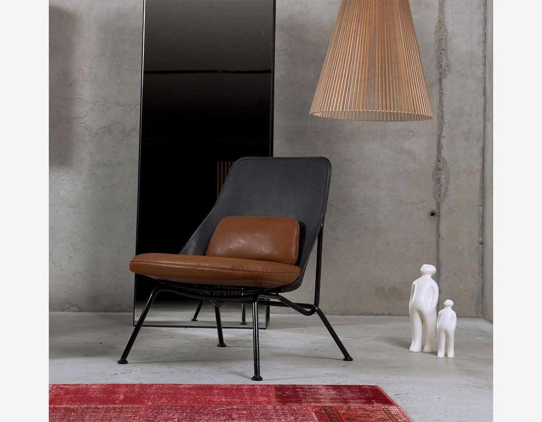 Algré sa légèreté visuelle, la chaise de salon Strain assure un confort digne d’un canapé: l’assise offre un parfait soutien grâce à ses bandes élastiques, tandis que la coque étirée du dossier s’accompagne d’un coussin pour le maintien des lombaires. Le coussin d’assise et la coque du dossier composée d’une plaque en deux dimensions sont apposés sur une structure métallique complexe. La forme est obtenue par étirage à partir de la partie supérieure de la structure de la partie inférieure du siège.