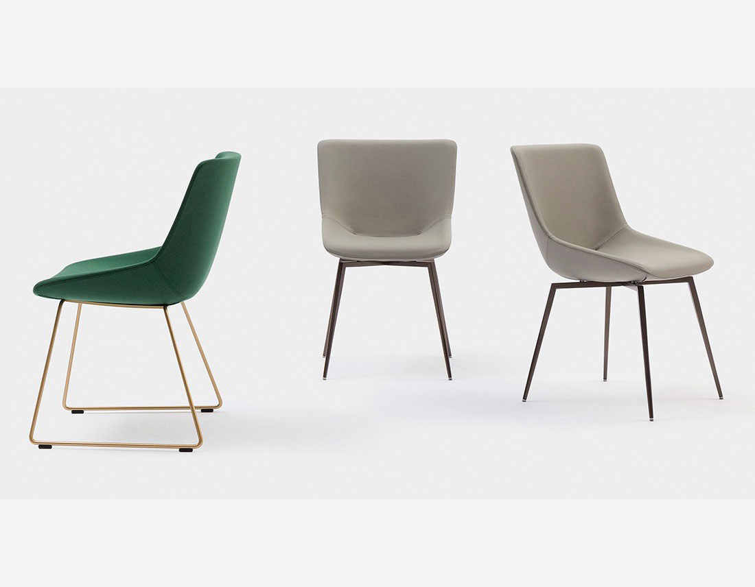 Le dessin sinueux et enveloppant de la chaise rembourrée Artika permet d’accueillir et d’embrasser la personne. Le trait distinctif de cette chaise, très évident de face, est le dossier, qui constitue un ensemble avec l’assise et qui s’ouvre vers le haut en donnant une idée d’expansion et d’amplitude.