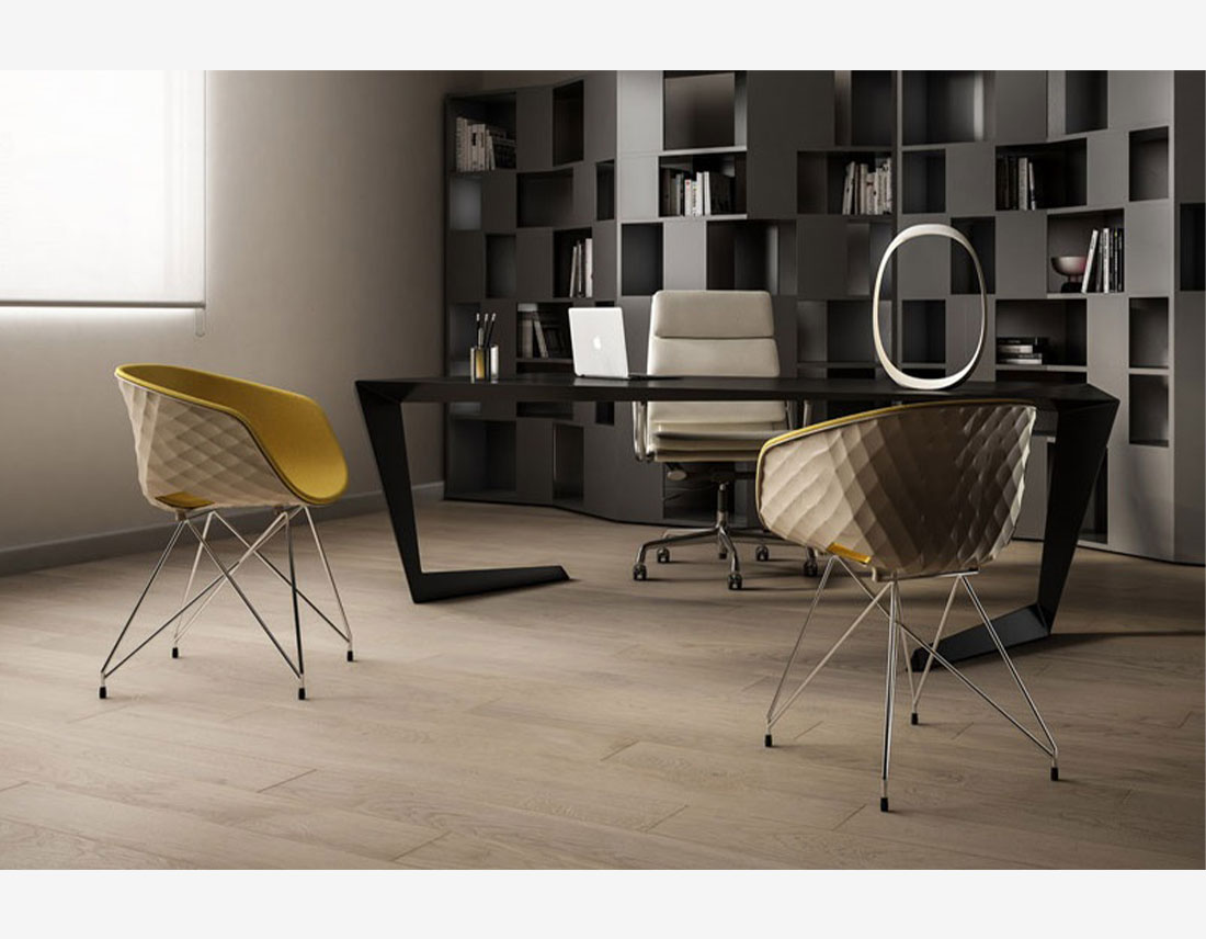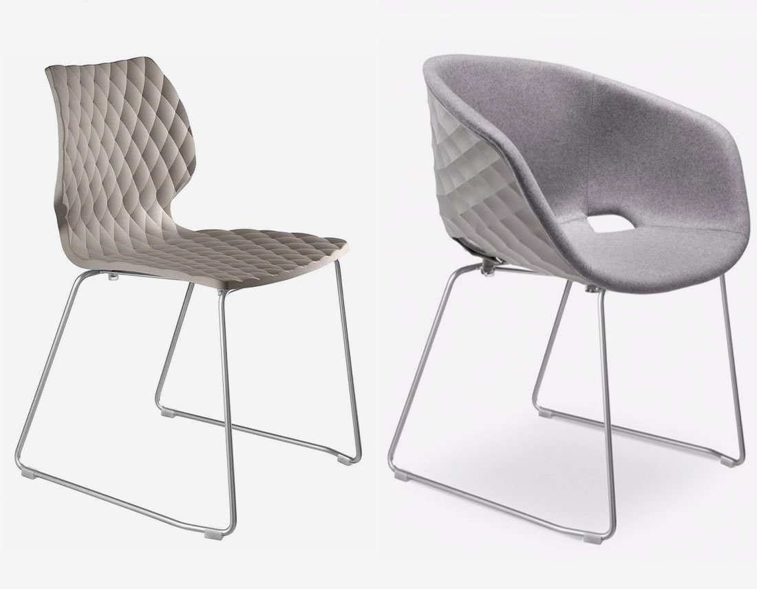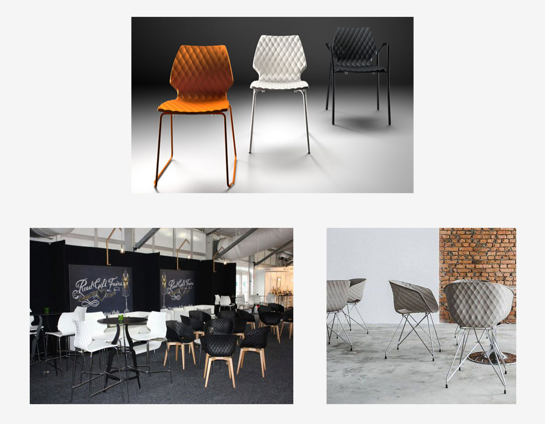 Uni-Ka ajoute une nouvelle dimension au monde des chaises coques grâce à son dessin matelassé. C’est un produit qui ne laisse pas indifférent avec sa forme arrondie et confortable ; un siège passe-partout, parce que le choix de couleurs de la coque en polypropylène et les différentes solutions du châssis en acier, la rendent idéale pour les collectivités, notamment pour les restaurants et hospitalité.