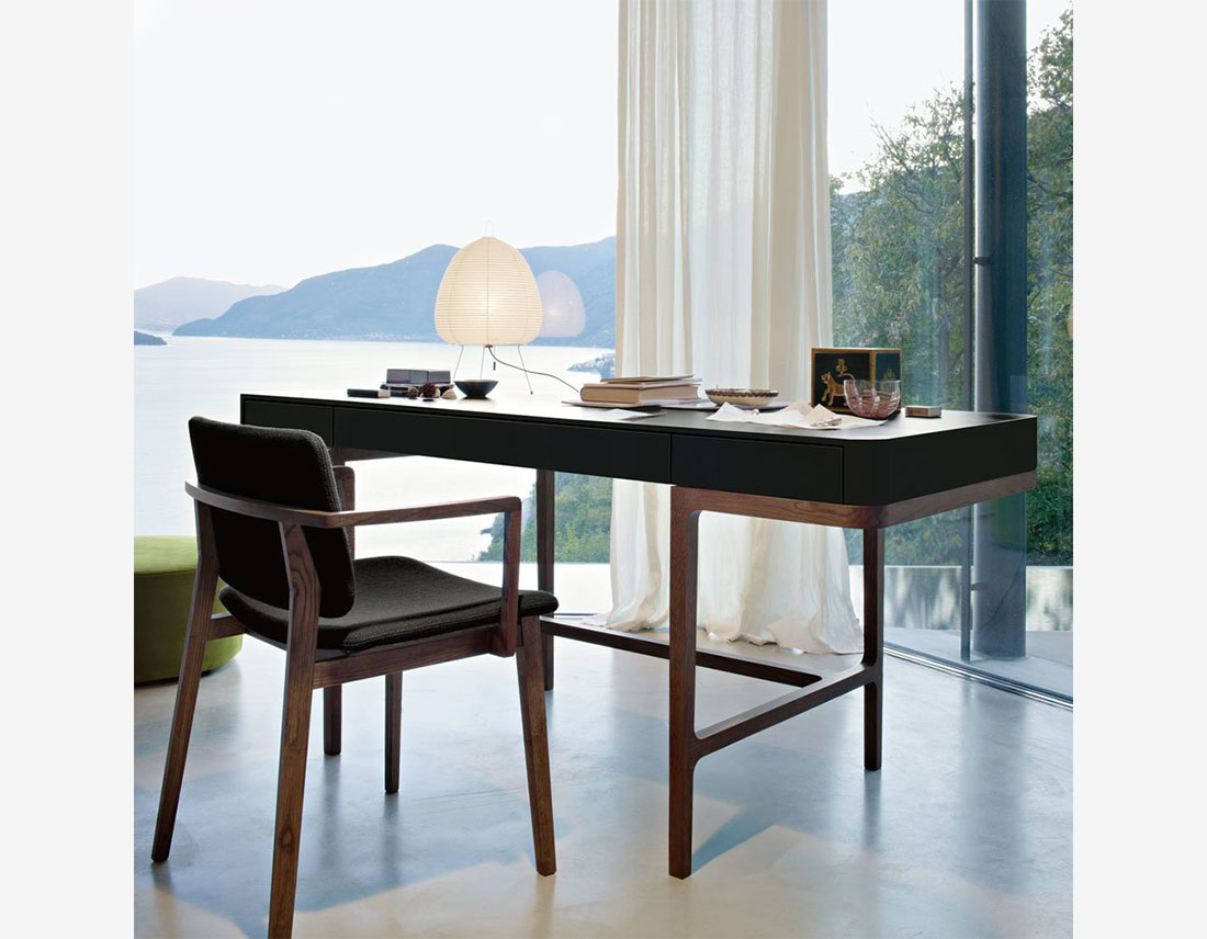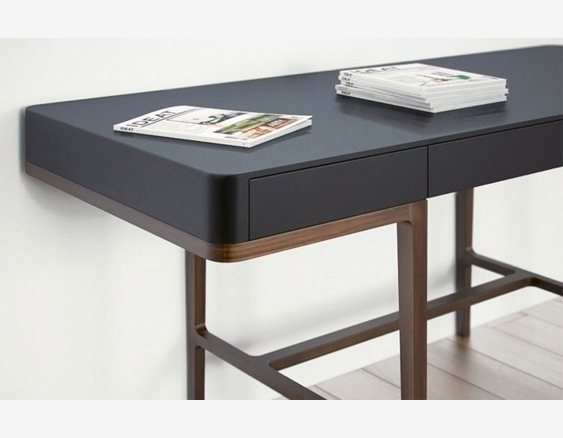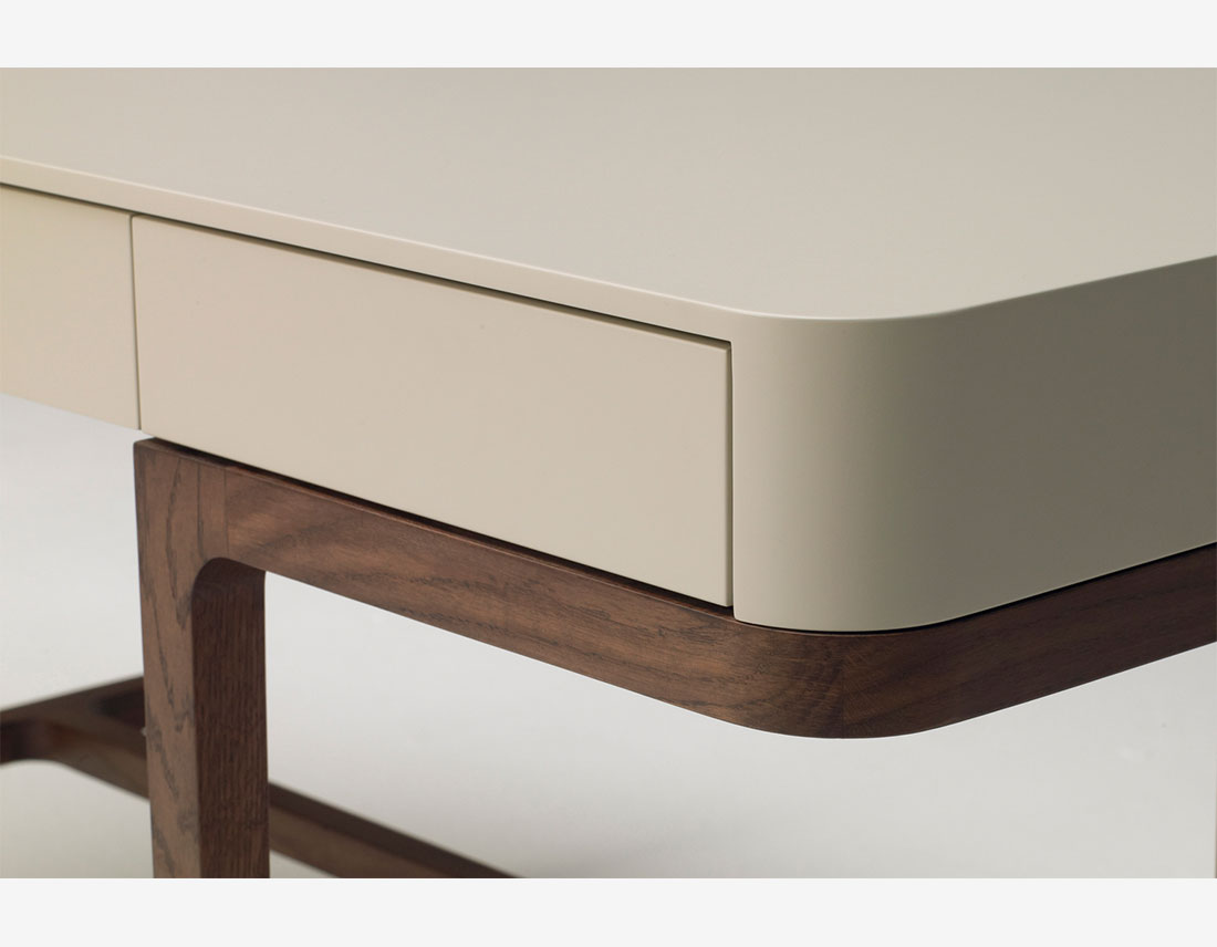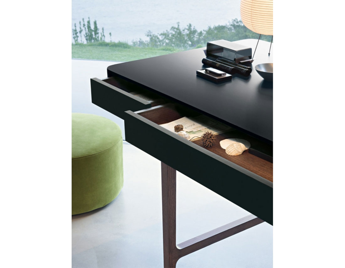 Inspiré du style distinctif de Roberto Lazzeroni qui propose une ré-interprétation moderne des pièces vintage, Victor se distingue par le contraste harmonieux entre les formes classiques d’un design en bois massif et le dessus mat laqué, disponible dans plus de 40 couleurs de la collection Lema. La structure cache des tiroirs utiles et fonctionnels.